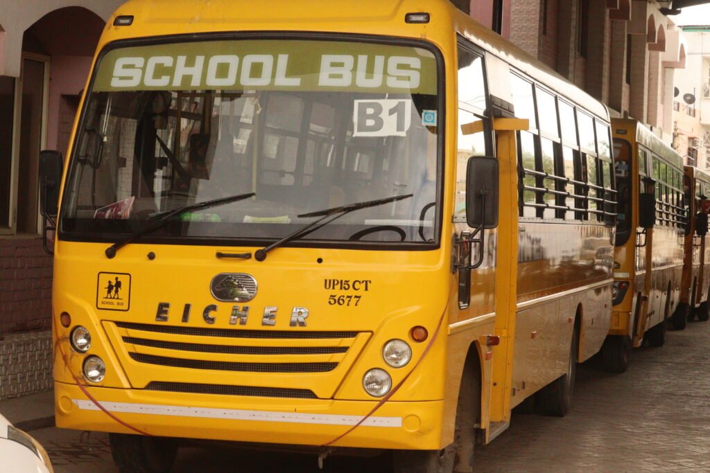 The students in school buses are accompanied by teachers and well-trained attendants/ escorts to ensure their safety & to confirm adequate discipline .